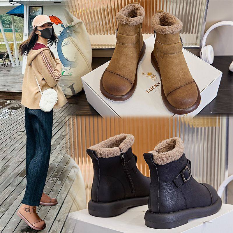 新款雪地靴女2025冬季女士复古加绒保暖低跟短靴女休闲百搭靴子女