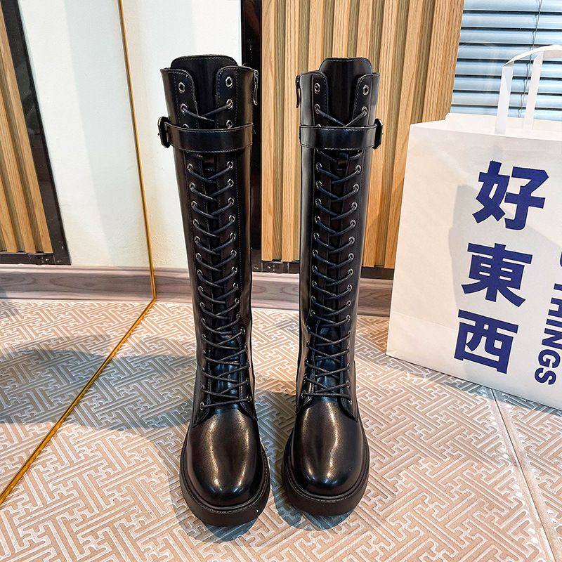 不过膝长筒靴女2025秋冬新款时尚骑士靴复古厚底百搭时装马丁靴子