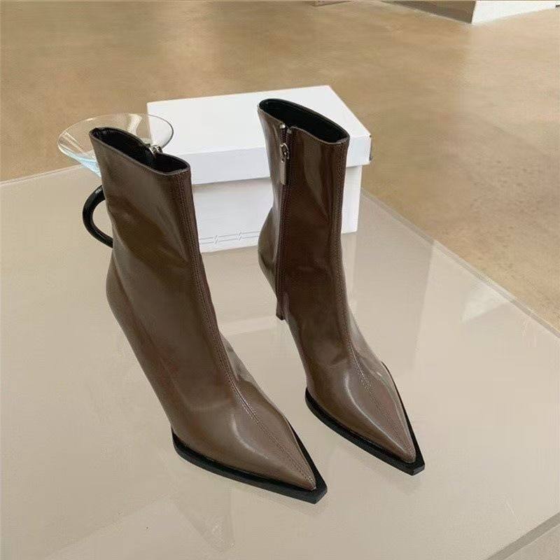 2025秋冬新款优雅职业时装靴短靴女设计高级感气质尖头弹力瘦瘦靴
