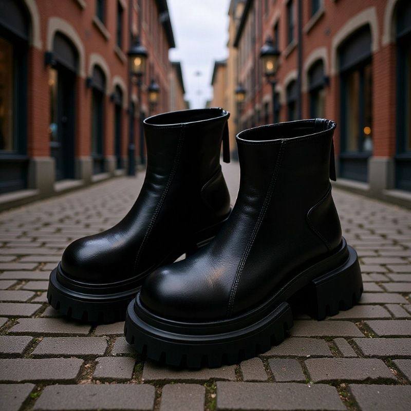 街头甜酷辣妹秋冬厚底粗跟非真皮大头瘦瘦靴女切尔西靴短靴马丁靴