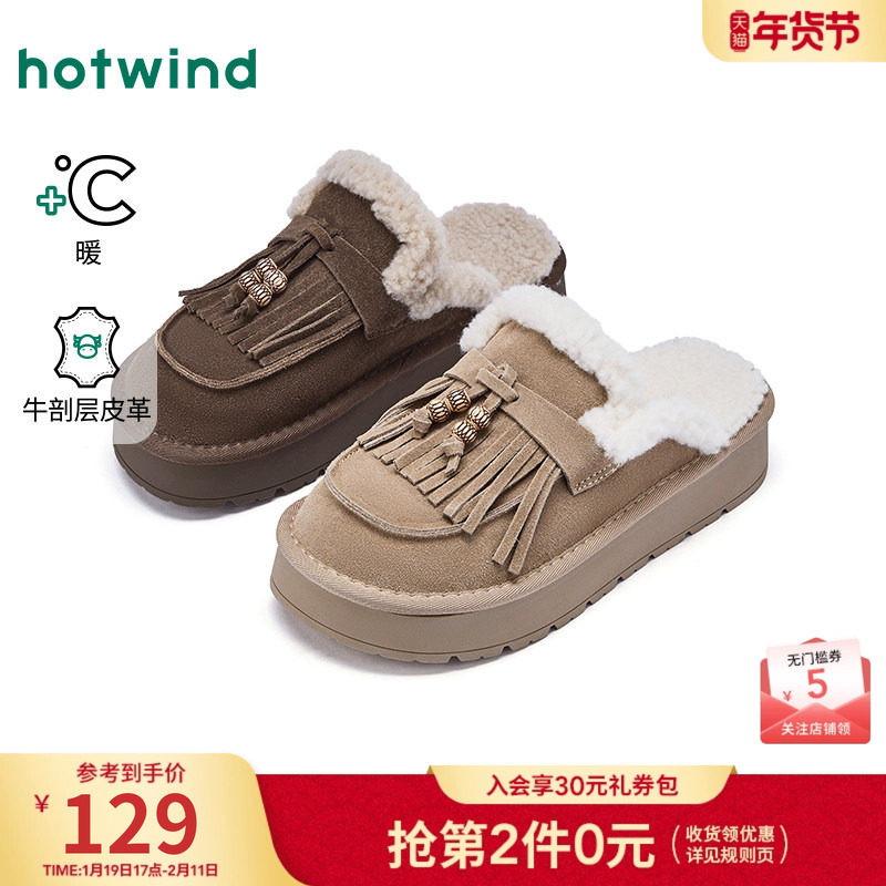 热风厚底雪地靴半拖女款2025年冬季新款加绒保暖休闲棉拖鞋女鞋子