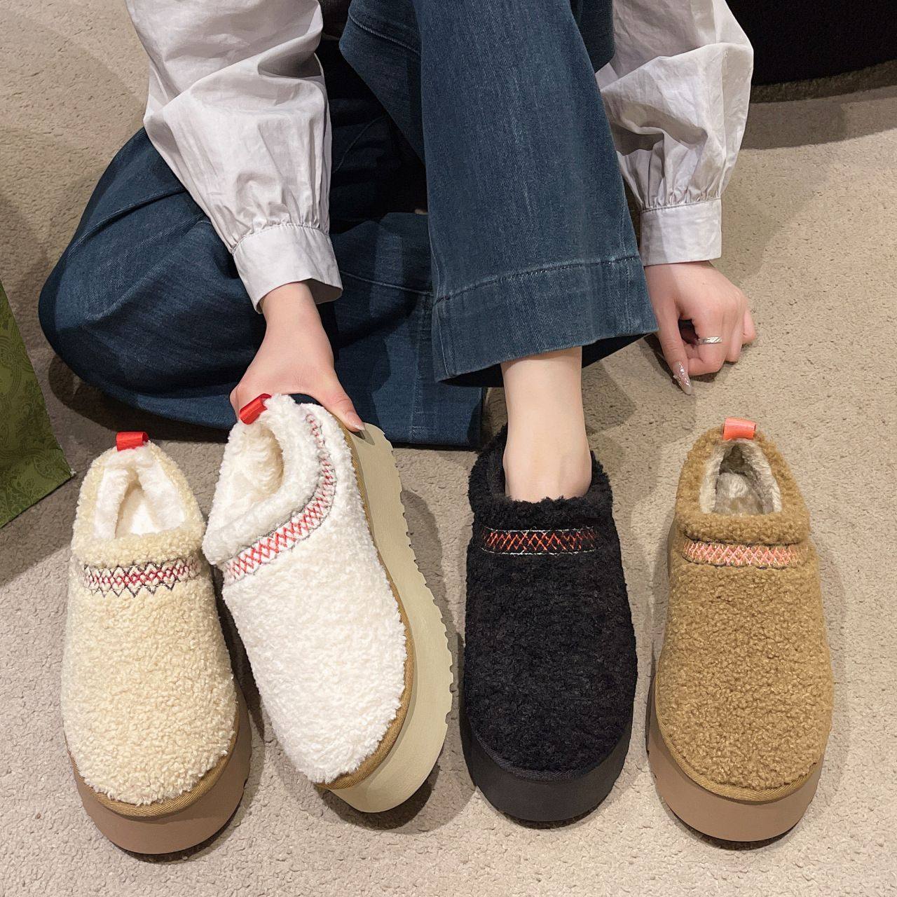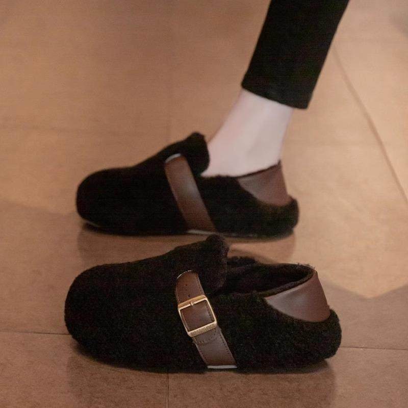 毛鞋为妇女的外层穿2025新的冬季拖鞋豆帽鞋面包棉鞋女鞋羊毛衬里