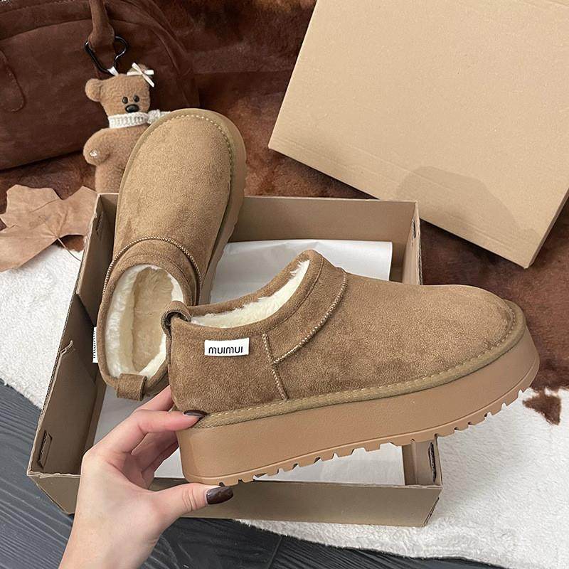厚底低帮雪地靴一脚蹬棉鞋女2026新款冬季加绒保暖包头棉拖鞋外穿