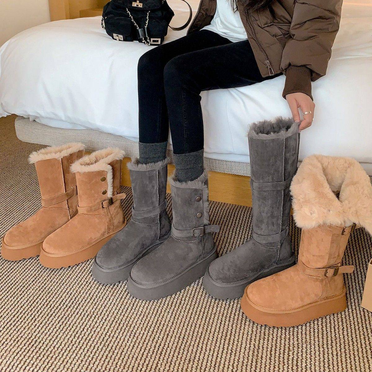 灰色雪地靴女2025冬季加绒加厚皮毛一体厚底增高长短筒靴雪地棉鞋