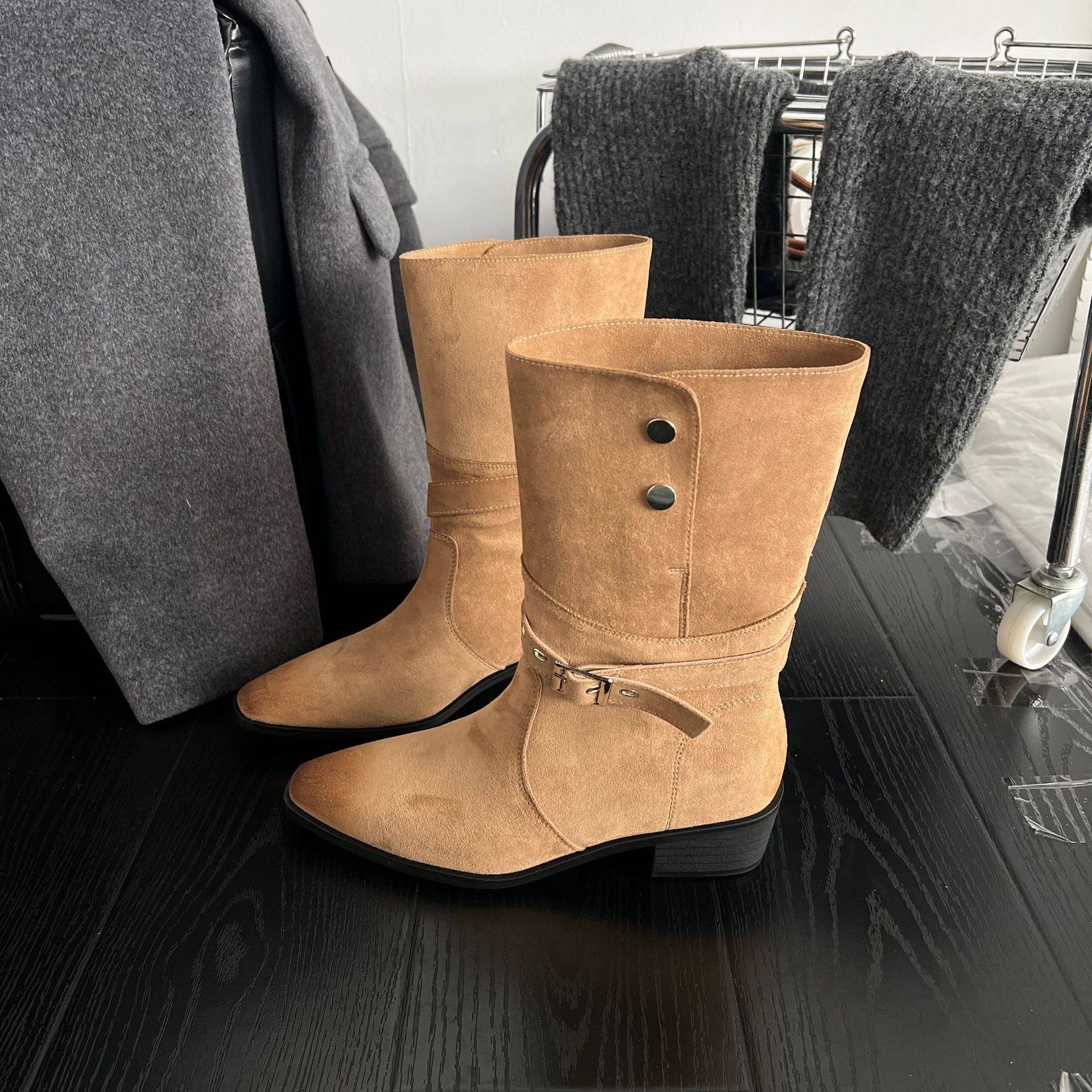时尚部落复古磨砂皮两穿短靴西部牛仔时装靴女2025秋冬新款马丁靴