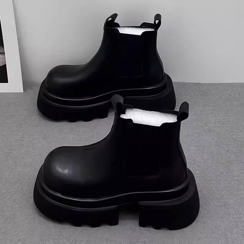 切尔西圆头厚底马丁靴女2025秋冬新款英伦小个子增高拉链烟筒短靴