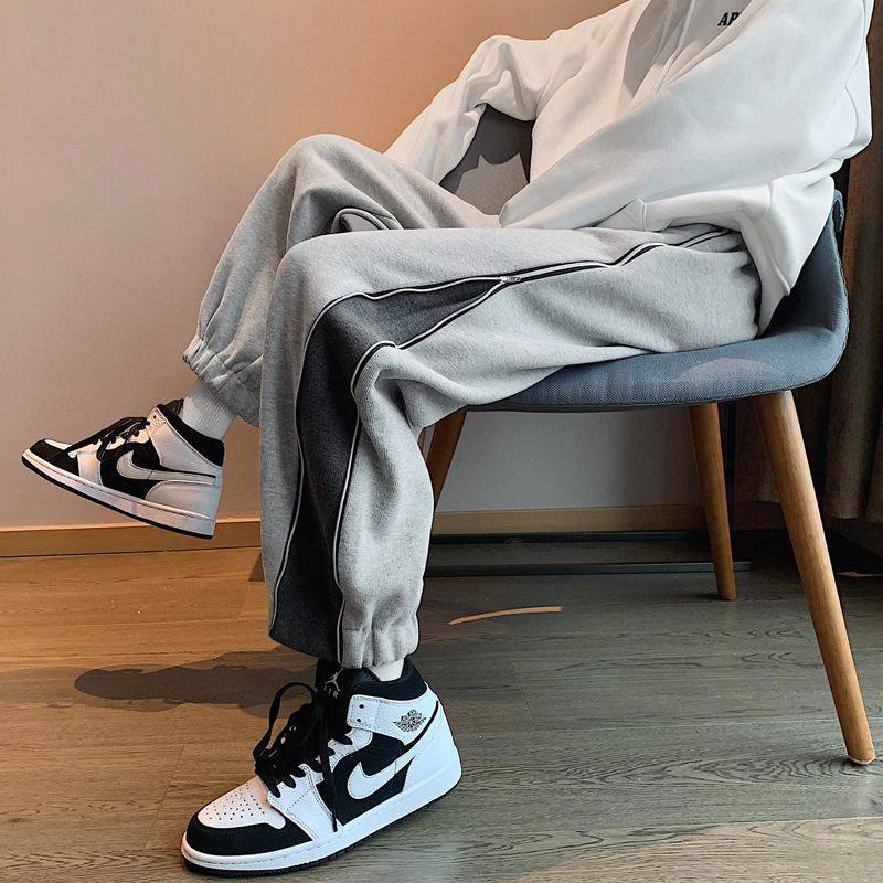拉链运动裤男宽松秋冬款个性卫裤韩版潮流冬季裤子加绒加厚阔腿裤