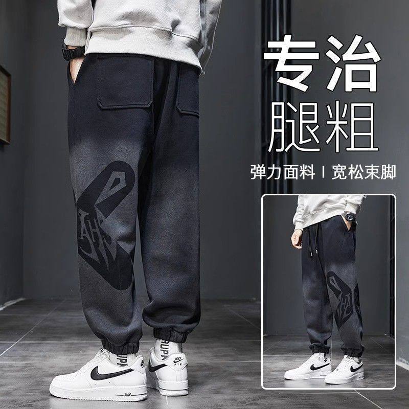 渐变色裤子男秋冬季运动卫裤男潮流韩版加绒加厚青少年休闲裤