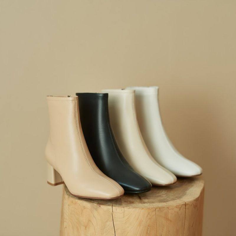 白色瘦瘦靴女粗跟真皮单靴2025秋冬新款方头侧拉链小踝靴马丁靴女
