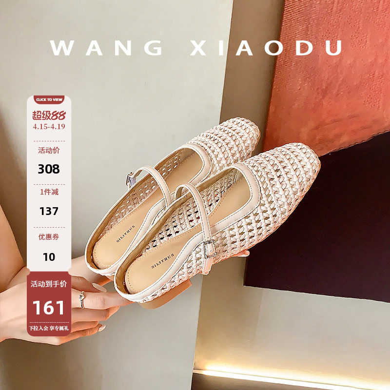 【王小毒】编织时光●镂空包头拖鞋女外穿度假粗跟方头一字扣半拖
