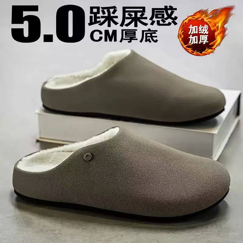 棉拖鞋男款冬季2025新款厚底防滑耐磨加绒保暖棉鞋一脚蹬半拖鞋