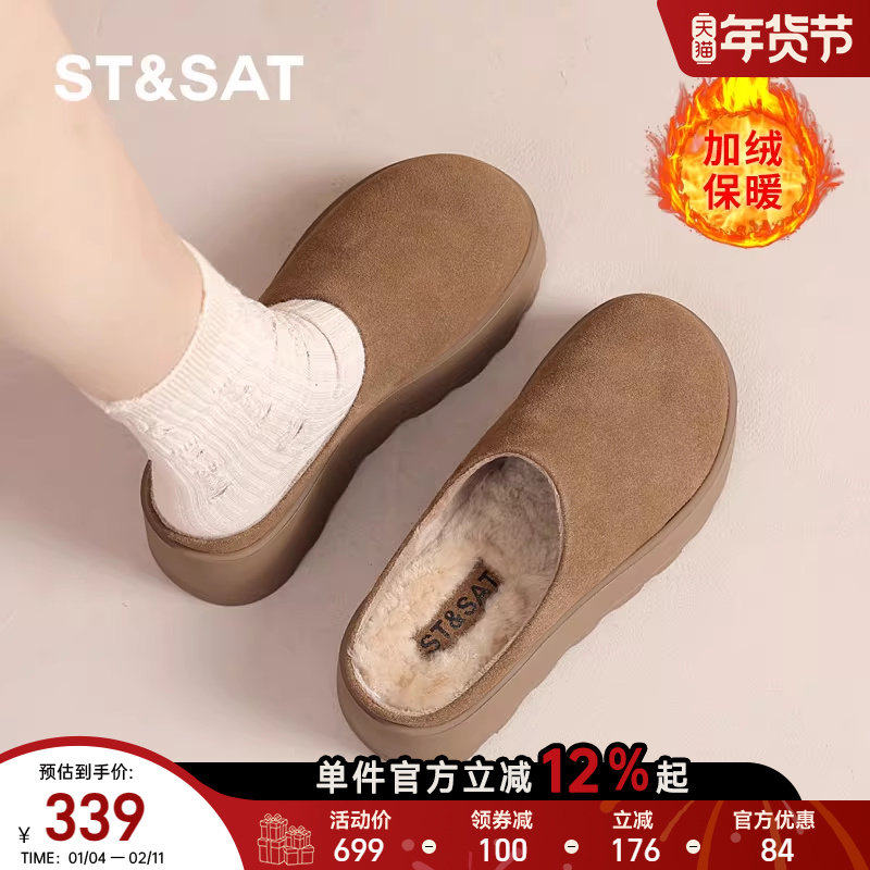 星期六厚底勃肯鞋女2025新款秋冬加绒保暖棉鞋一脚蹬包头毛毛拖鞋