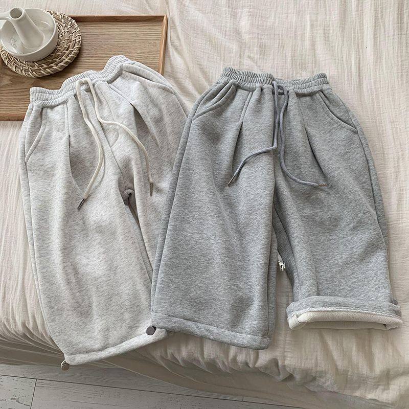 韩版儿童一体绒卫裤24冬款宝宝保暖加厚长裤男女童百搭休闲直筒裤