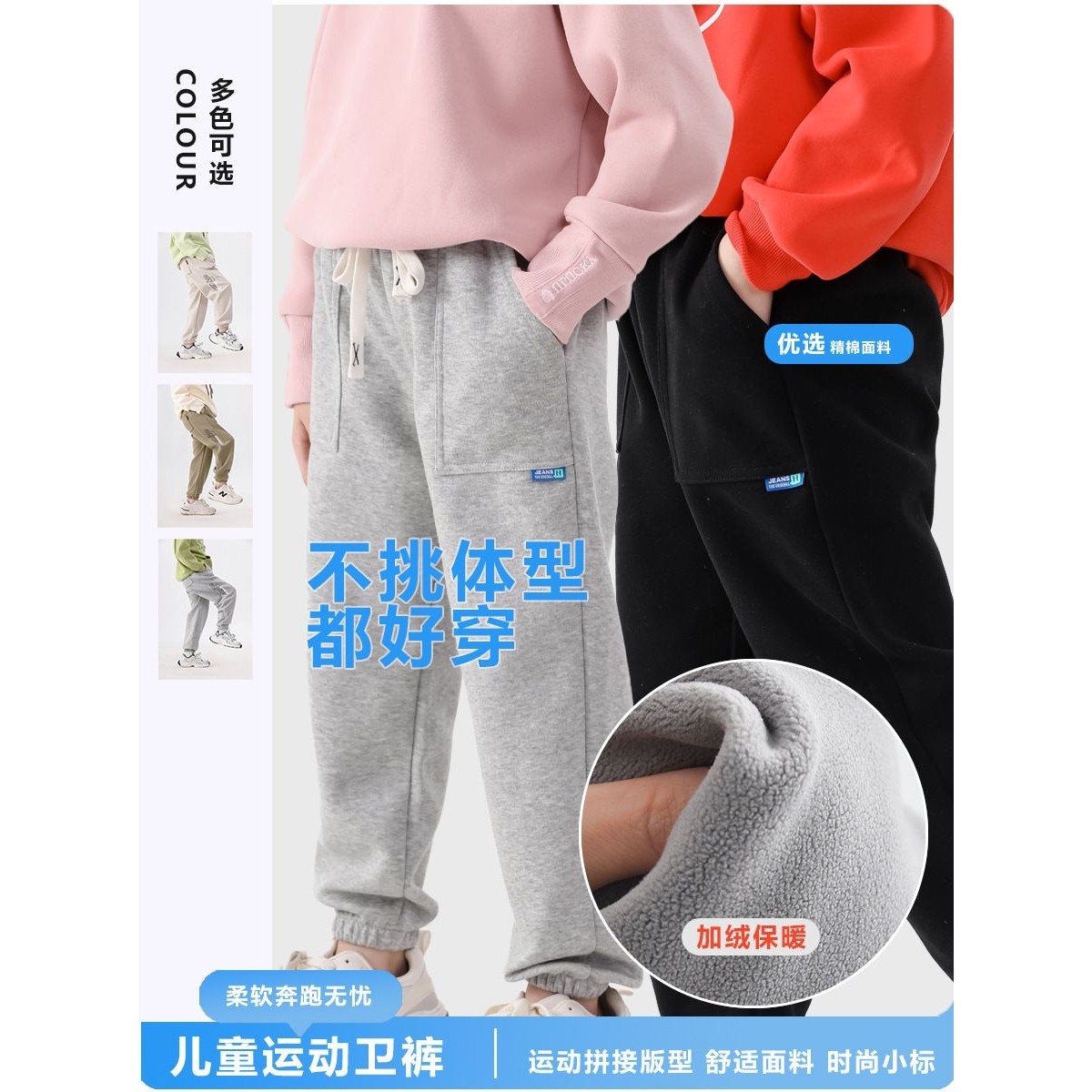 儿童加厚卫裤冬季新款男女童加绒运动裤中大童外穿洋气休闲裤