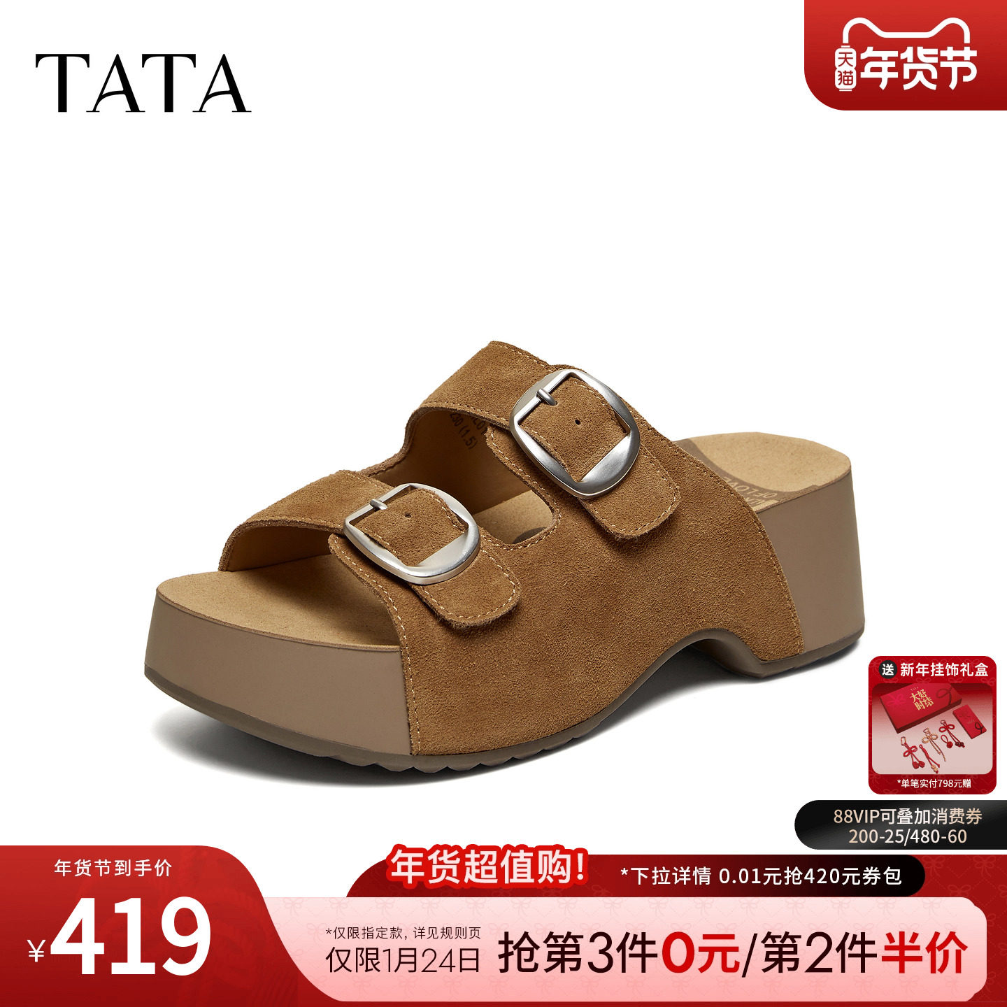 TATA他她女鞋2026夏季勃肯鞋百搭外穿拖鞋厚底小个子凉鞋CML01BT6