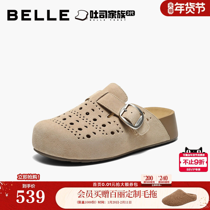 百丽厚底半岛吐司鞋透气打孔包头勃肯鞋2026新款外穿拖鞋F5Z1DB预