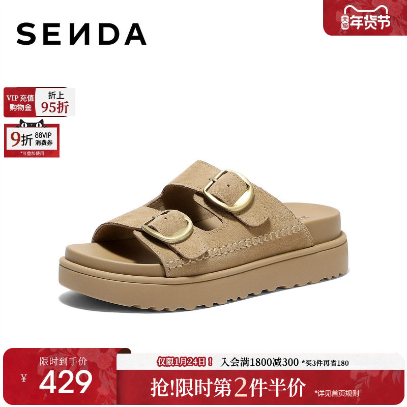 森达勃肯鞋女2026夏新商场同款舒适外穿厚底凉拖鞋XYX04BT6