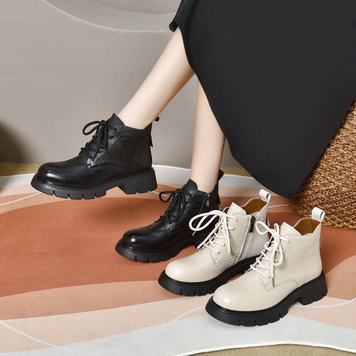 全牛皮马丁靴女2025新款秋冬厚底圆头白色防水台真皮英伦风小短靴