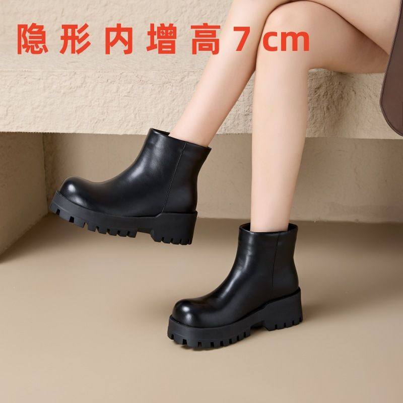 小个子厚底增高靴女中筒秋冬马丁圆头短靴新款防水欧美时装成年男