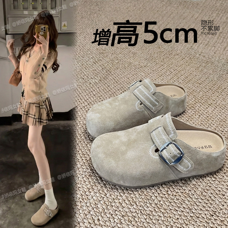 厚底勃肯鞋女2026春秋新款外穿一脚蹬懒人包头半拖鞋增高博肯单鞋
