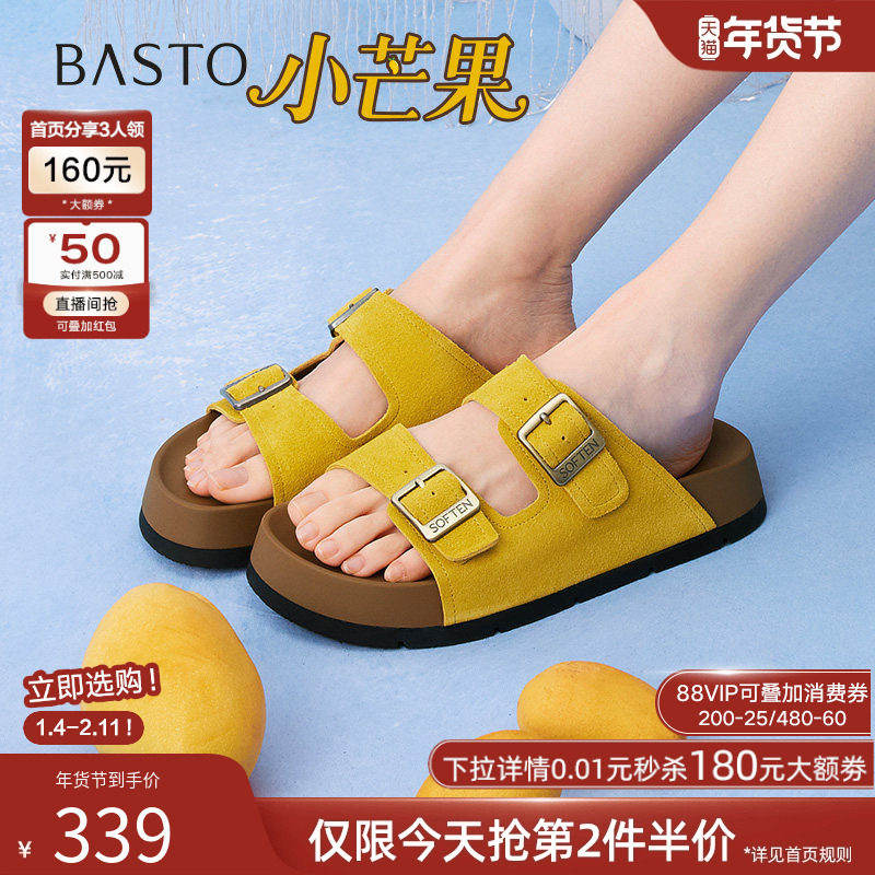 【小芒果】百思图2025夏季商场新款厚底勃肯鞋外穿女拖鞋F1121BT5