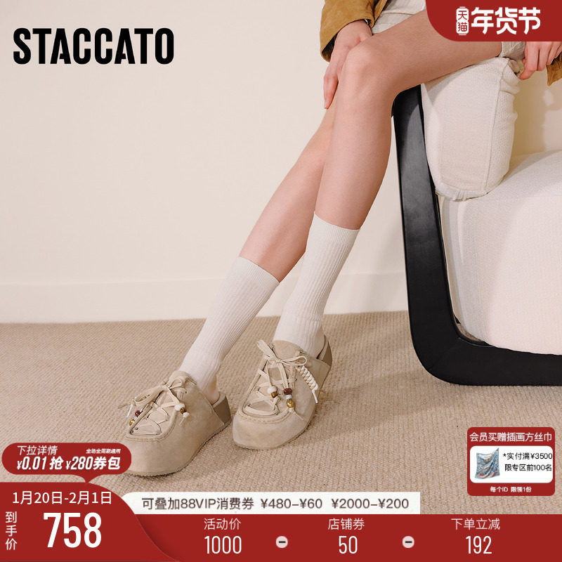 星期六厚底勃肯鞋女2026年春季新款黄色搭扣百搭单鞋一脚蹬半拖鞋