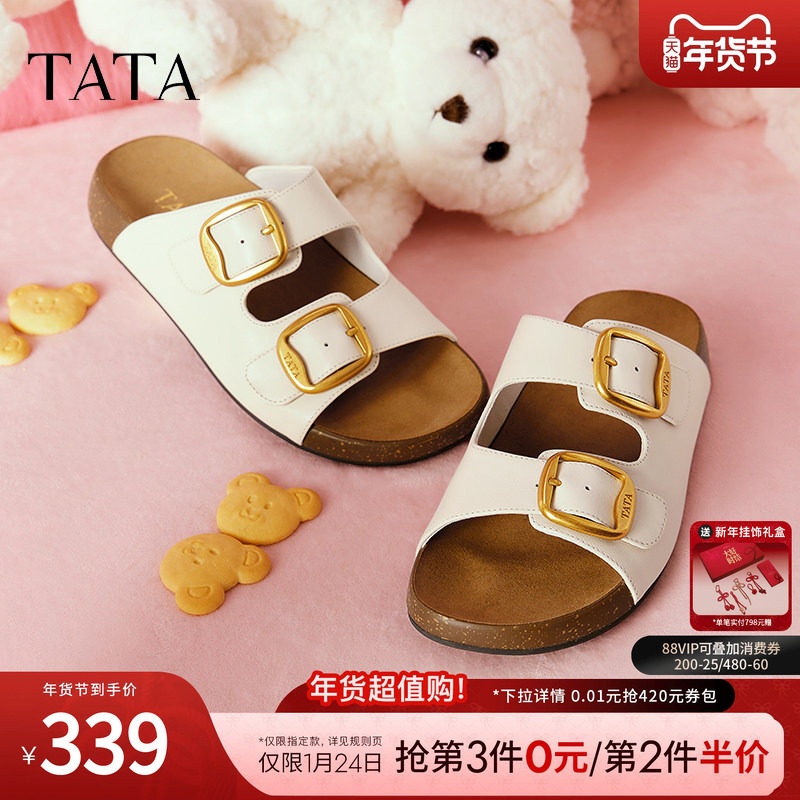 TATA他她复古勃肯拖鞋女鞋厚底沙滩外穿凉鞋2025夏季新款4QK01BT5