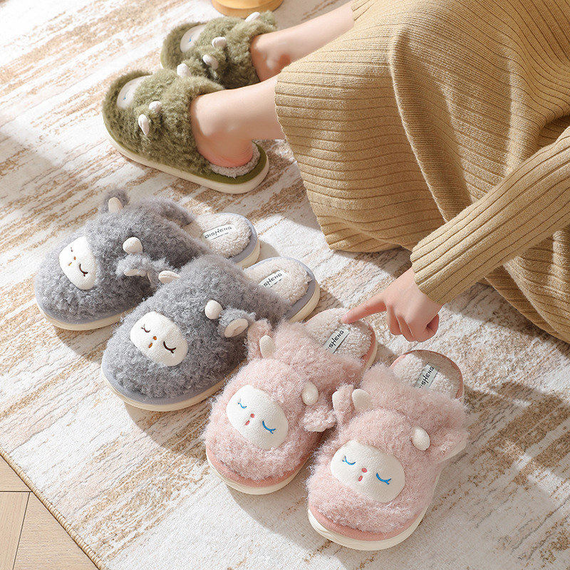 新款卡通小羊棉拖鞋女秋冬季软底家居室内防滑保暖加绒毛毛棉鞋男