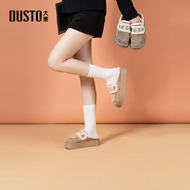 大东女鞋雪地靴2025冬季新款加绒保暖毛毛拖鞋豆豆靴女拖棉鞋