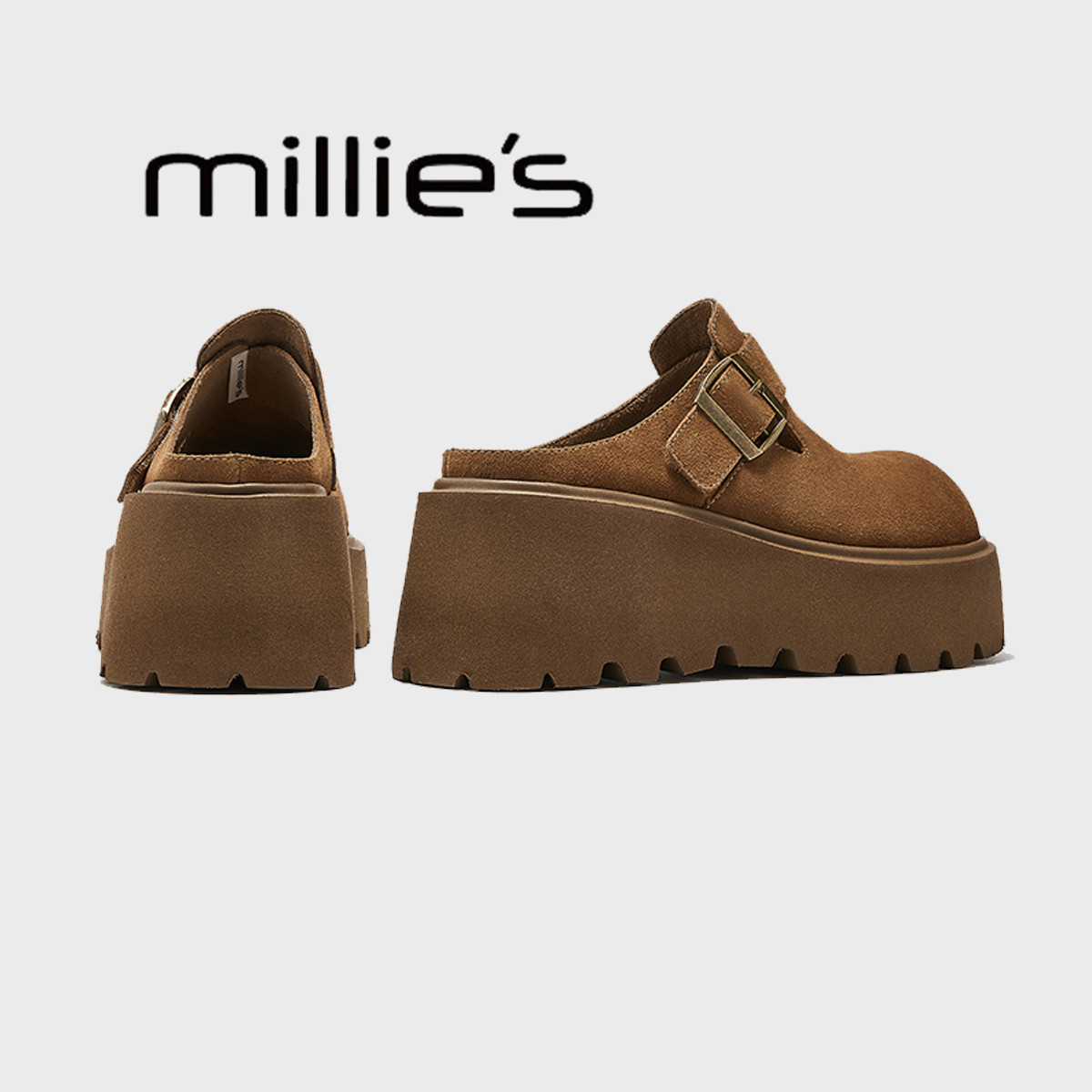 MILLIE'S/妙丽厚底勃肯鞋女2026一脚蹬懒人外穿半拖鞋松糕包头拖