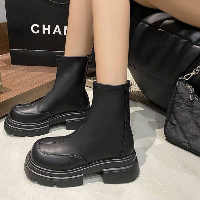 加绒踝靴瘦瘦靴马丁靴女靴子2025新款春秋冬季厚底法式韩系小短靴