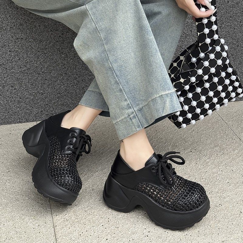包头半拖鞋女外穿2025夏季新款镂空透气懒人凉拖8cm厚底增高女鞋