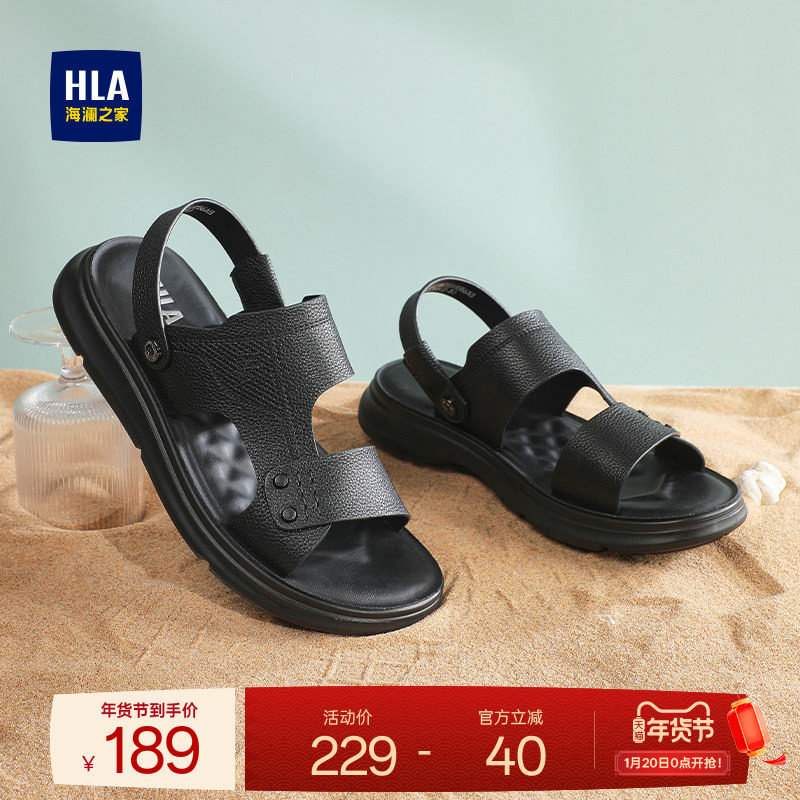 HLA/海澜之家男鞋新款夏季真皮休闲透气男沙滩鞋户外凉拖鞋两穿