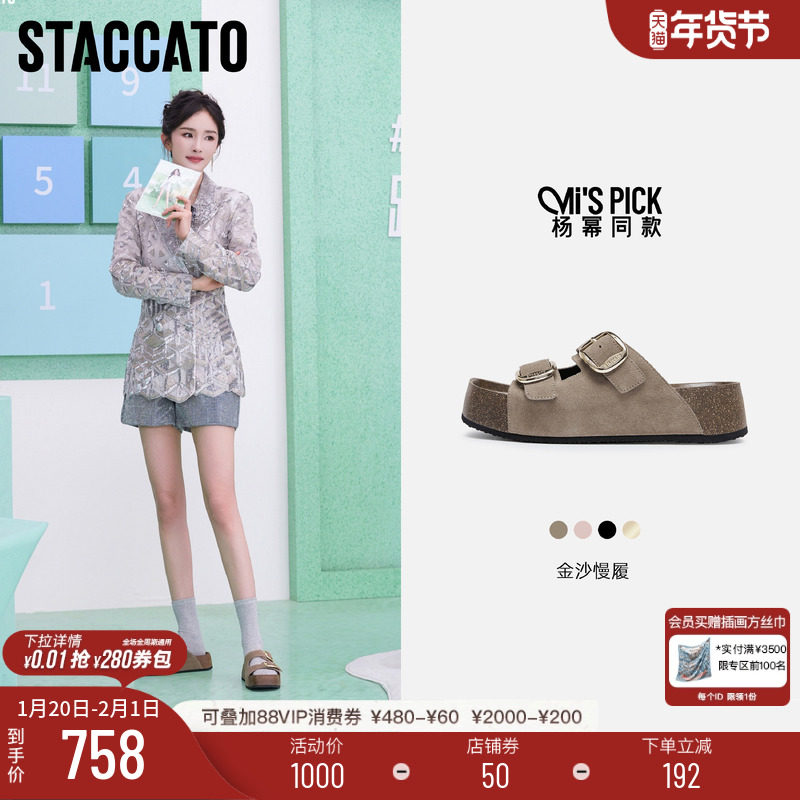 杨幂同款思加图新款金沙慢履勃肯鞋外穿凉拖鞋ED104BT5C