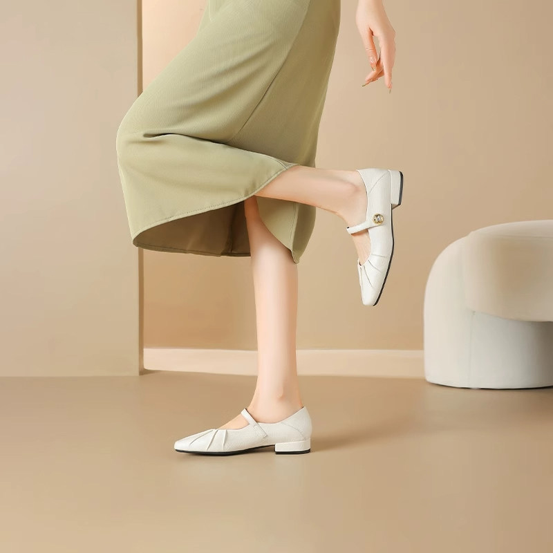 杰豪女鞋真皮气质小方头女单鞋2024秋季新款玛丽珍鞋女单鞋半拖鞋