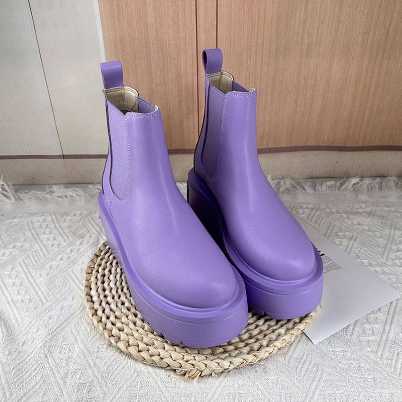 弹力靴子厚底短靴女2025年新款春秋单靴粗跟英伦切尔西靴女瘦瘦靴