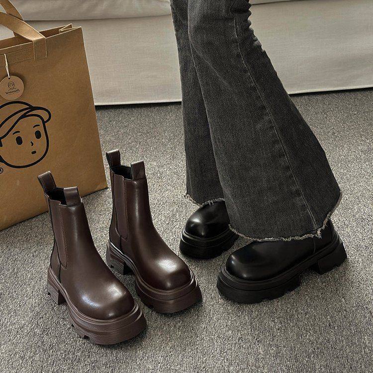切尔西马丁靴女2025新款春秋单靴厚底烟管烟筒咖色短靴女靴子