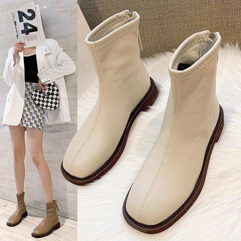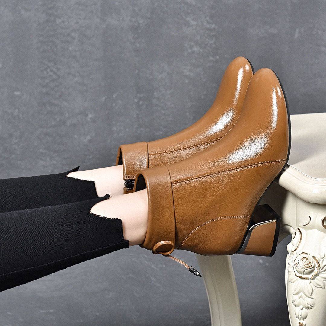 小短靴女真皮2025新款百搭春秋单靴马丁靴秋款圆头皮鞋低跟女靴