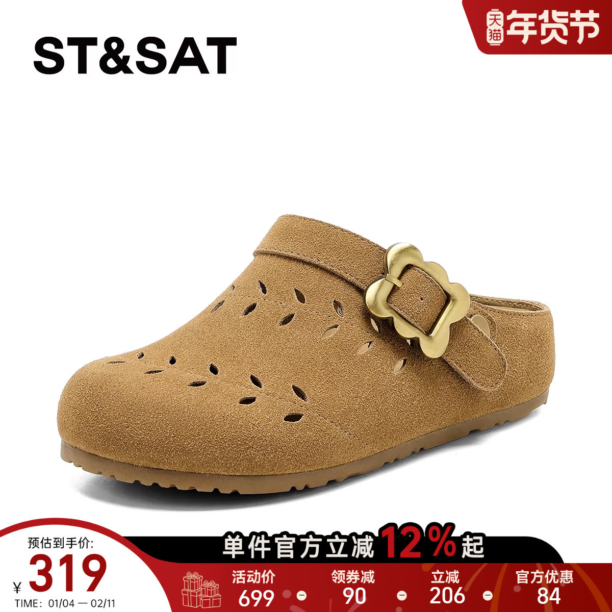 星期六厚底勃肯鞋女2026年春季新款复古棕色搭扣一脚蹬包头半拖鞋