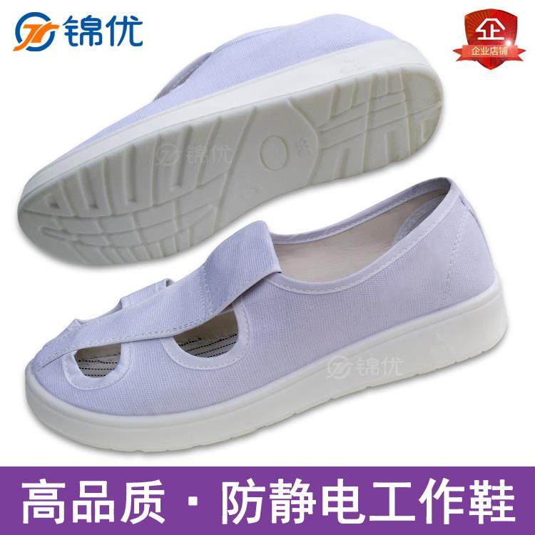 锦优 防静电鞋PU软底蓝色白色防尘工作鞋拖鞋帆布中巾四孔无尘鞋