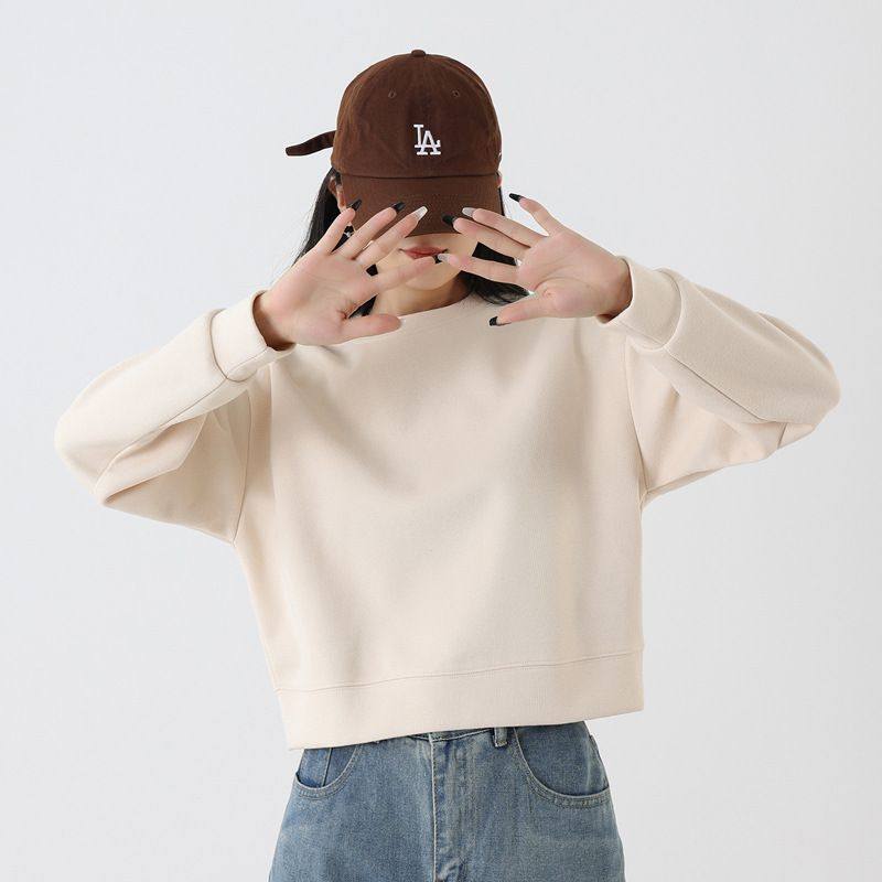 圆领纯色卫衣女秋短款新款山东即墨卫衣宽松休闲纯色短款卫衣