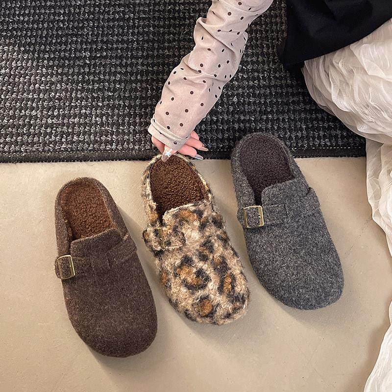 厚底毛毛棉鞋女冬外穿2026森系复古勃肯鞋女加绒懒人一脚蹬棉拖鞋