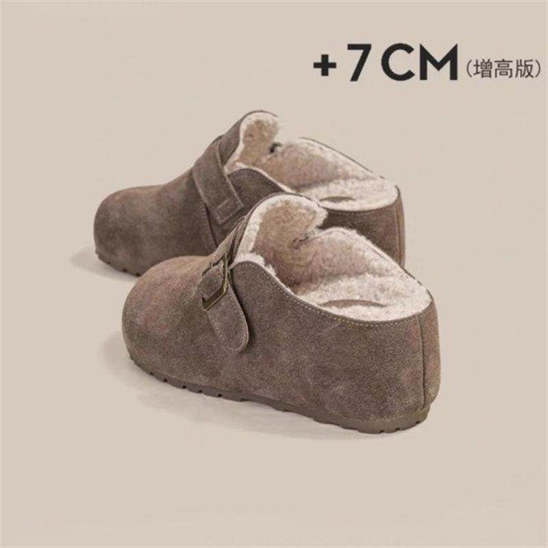 2026秋冬新款复古厚底内增高勃肯鞋懒人拖鞋加绒包头半拖鞋女外穿