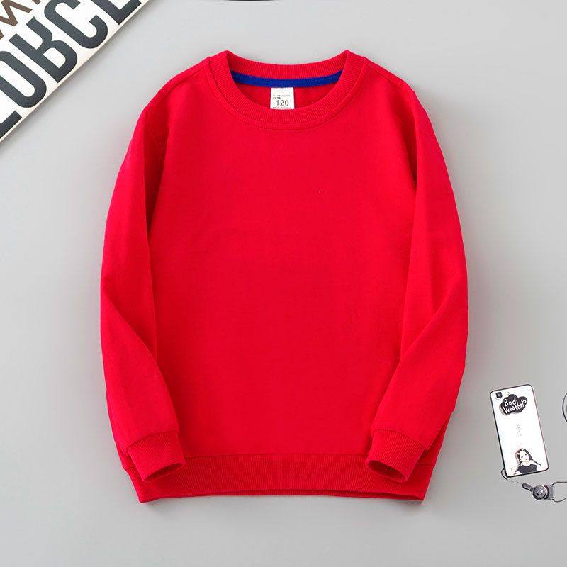 儿童春秋款棉卫衣素色圆领套头衫男女童中小大童休闲薄款远动上衣