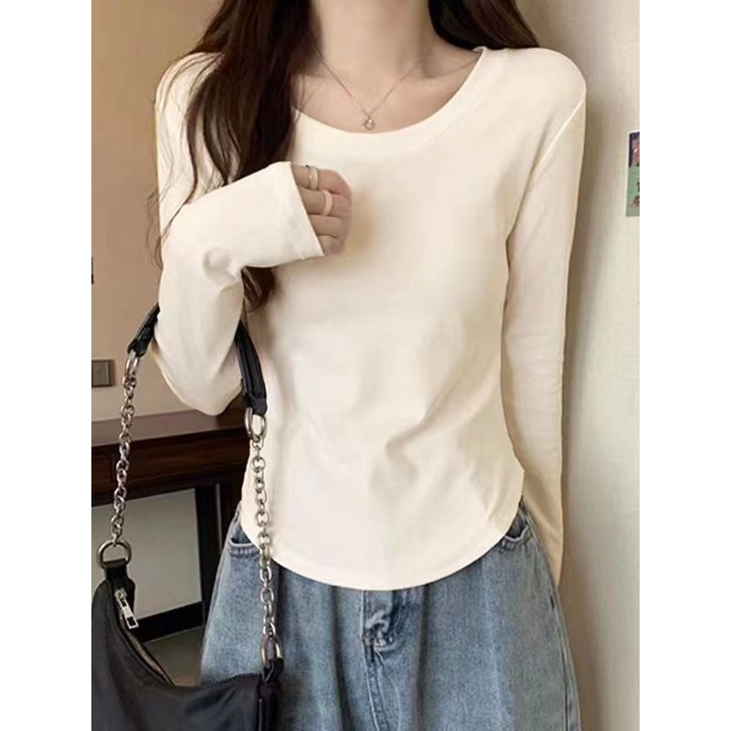 [95棉]纯棉正肩长袖T恤女 新款早秋设计感小众内搭薄款圆领打底衫