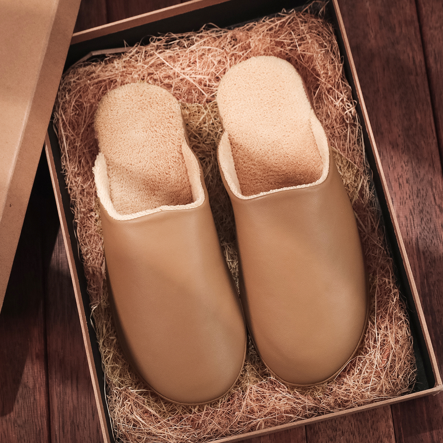 高端轻奢手工全羊皮拖鞋冬季男女居家室内防滑软底毛绒保暖棉拖鞋