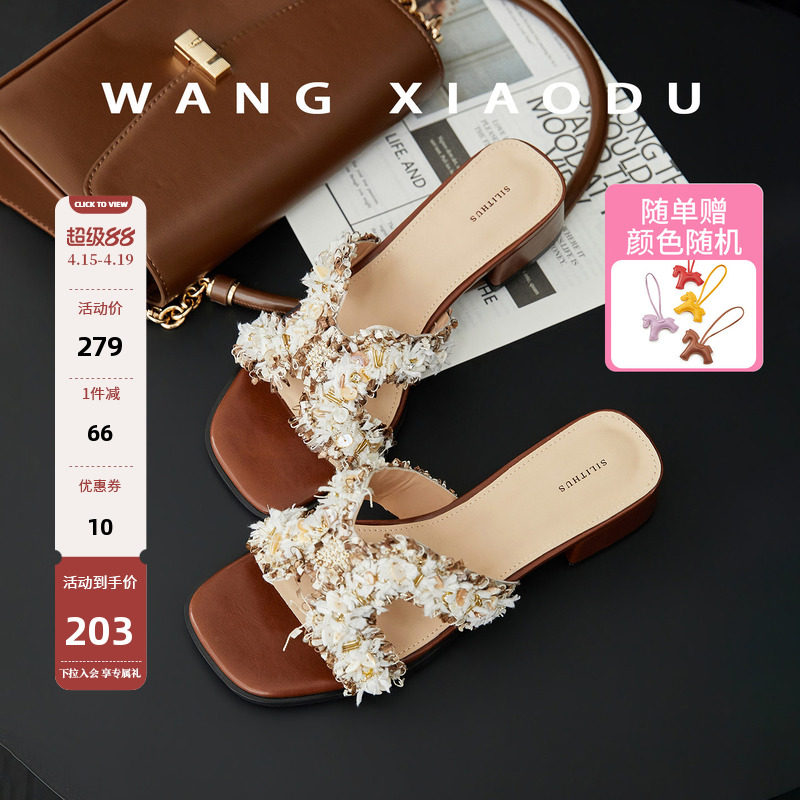 福利!送小马!!原创【王小毒】香风H拖●3.5cm一字凉拖鞋女粗跟