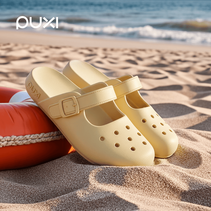 朴西玛丽珍洞洞鞋女夏季软底居家防滑不臭脚外穿包头透气沙滩凉拖鞋男 浅沙色【店铺爆款】 35-36 适合(34-35)