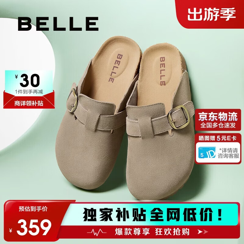 百丽舒适勃肯鞋慵懒休闲百搭夏季拖鞋女外穿包头拖鞋B2591BH5 灰色 36