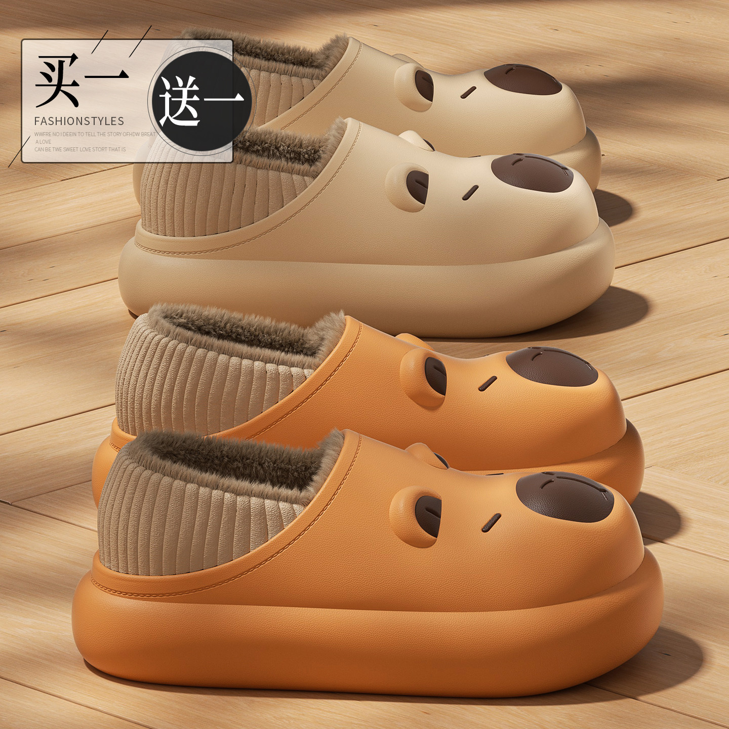 买1送1卡皮巴拉棉拖鞋女冬季室内家居防滑情侣包跟可外穿防水棉鞋